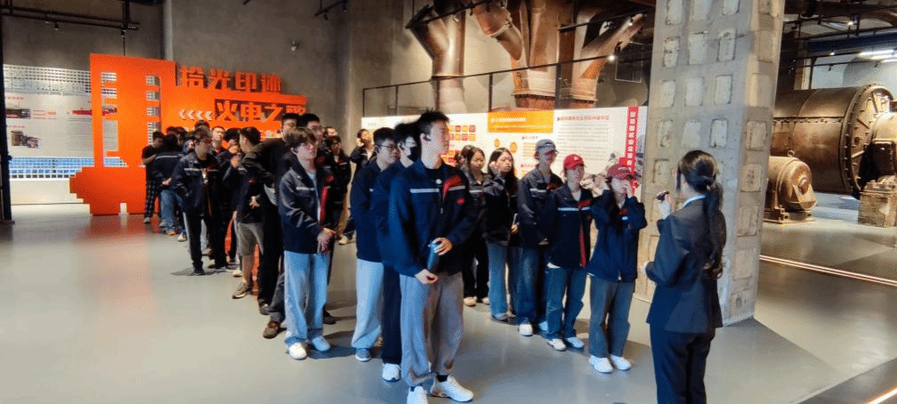 在赵世强和李林老师的带领下,同学们参观了温州能源博物馆,经讲解员的专业解说和观看影视资料,沉浸式体验了温州工业文明,感受了能源生态的发展脉络。业遗存展区内,锈迹斑斑的冷凝管、汽轮机基座,以及声光电技术重现的锅炉烈焰场景,带来强烈视觉冲击,展现出重工业的独特魅力,也让同学们对博物馆有了新的认识。从五马街首盏电灯亮起,到东屿电厂的辉煌历史,同学们体会到电力发展背后的奋斗历程。能源认知展区通过档案和口述,呈现燃煤发电的污染问题,同时以氢能制备演示、核电站模型等展项,具象化“双碳”等概念,明晰能源革命路径。同学们由此认识到不同能源的特点与利弊,深感需合理用能、加强环保、推广清洁能源,助力可持续发展。