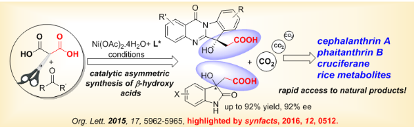 2.Ni(II)-Catalyzed Enantioselective Synthesis of β‑Hydroxy Esters with Carboxylate Assistance,Na Wang, Hongxin Liu,* Hang Gao, Jiafeng Zhou, Longzhangdi Zheng, Juan Li,Hong-Ping Xiao,Xinhua Li, and Jun Jiang*,Org. Lett. 2019, 21, 17, 6684–6689.