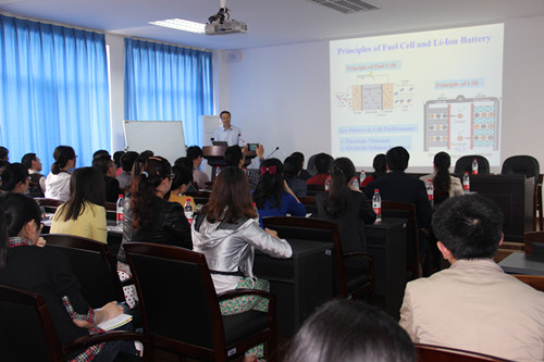 万立骏院士作了题为“能源研究中的纳米材料及其表界面研究”的专题报告。主要介绍了万立骏院士课题组在燃料电池中甲醇氧化的纳米催化材料、用于锂离子电池的纳米材料和电化学扫描隧道显微术(STM)在电极/电解质表界面研究中的应用等方面所取得的研究成果。在电池材料的相关成果中,重点介绍了材料的合成思路,比如通过包覆碳层的方法可以有效地提高锂离子电池负极材料的稳定性,避免由于体积膨胀所带来的结构坍塌,从而在多次充放电过程中表现出很好的循环特性。另一方面,通过STM技术和STS技术的结合,在常温常压的气相和液相环境中,实时原位地观测了电极表面的形貌、IV曲线和化学过程,为高性能电池的作用过程和一些重要的化学反应提供的微观机理的解释。