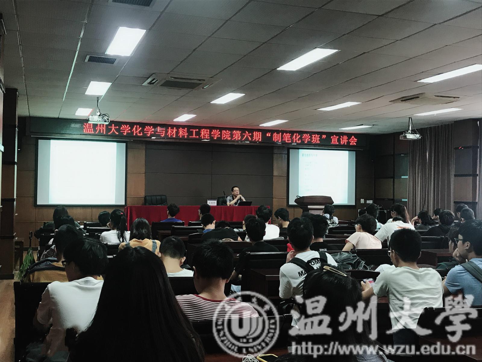 宣讲会伊始,王兆伦老师首先向同学们介绍了女同av 制笔实验室以及其研究内容和方向,并介绍了温州市制笔行业技术研究中心硬件条件和制笔技术研究开发情况。接着,王老师又讲述了我国制笔产业的现状,通过王老师的介绍,同学们对制笔这个行业的前景以及发展空间有了一个初步的了解。接下来便是此次宣讲会的重点——介绍制笔化学班。王老师具体讲解了制笔班所培养的生源的条件、联合培养内容和培养过程,使得学生们对如何进入制笔班和今后学校对制笔班的培养方案有了一个大致的认识,这对他们决定是否要进入制笔班起了重要的引导作用。最后,王老师讲述了制笔业的主要企业及地域,并鼓励学生们要有勇气走出去,去制笔行业发达的地区磨砺自己。会后,王老师还就学生提出的问题作了积极回应,同学们纷纷表示对于制笔行业有了进一步的认识,并表示会积极报名参加“制笔班”的专业学习。