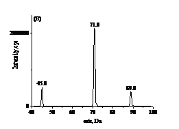 Fig 1. ESI-MS/MS product scan spectrum of dicyandiamide (A) and 15N4- dicyandiamide (B)