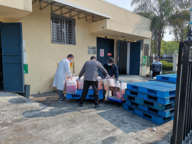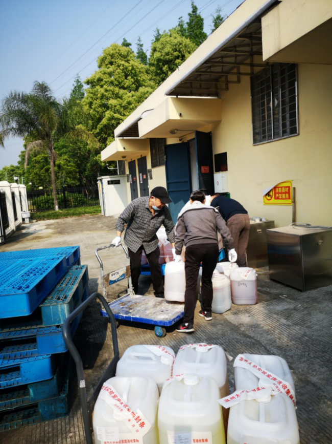 在国资与实验室管理处支持下,我院实验中心组织了“五一”放假前实验室危险废弃物的清运工作。