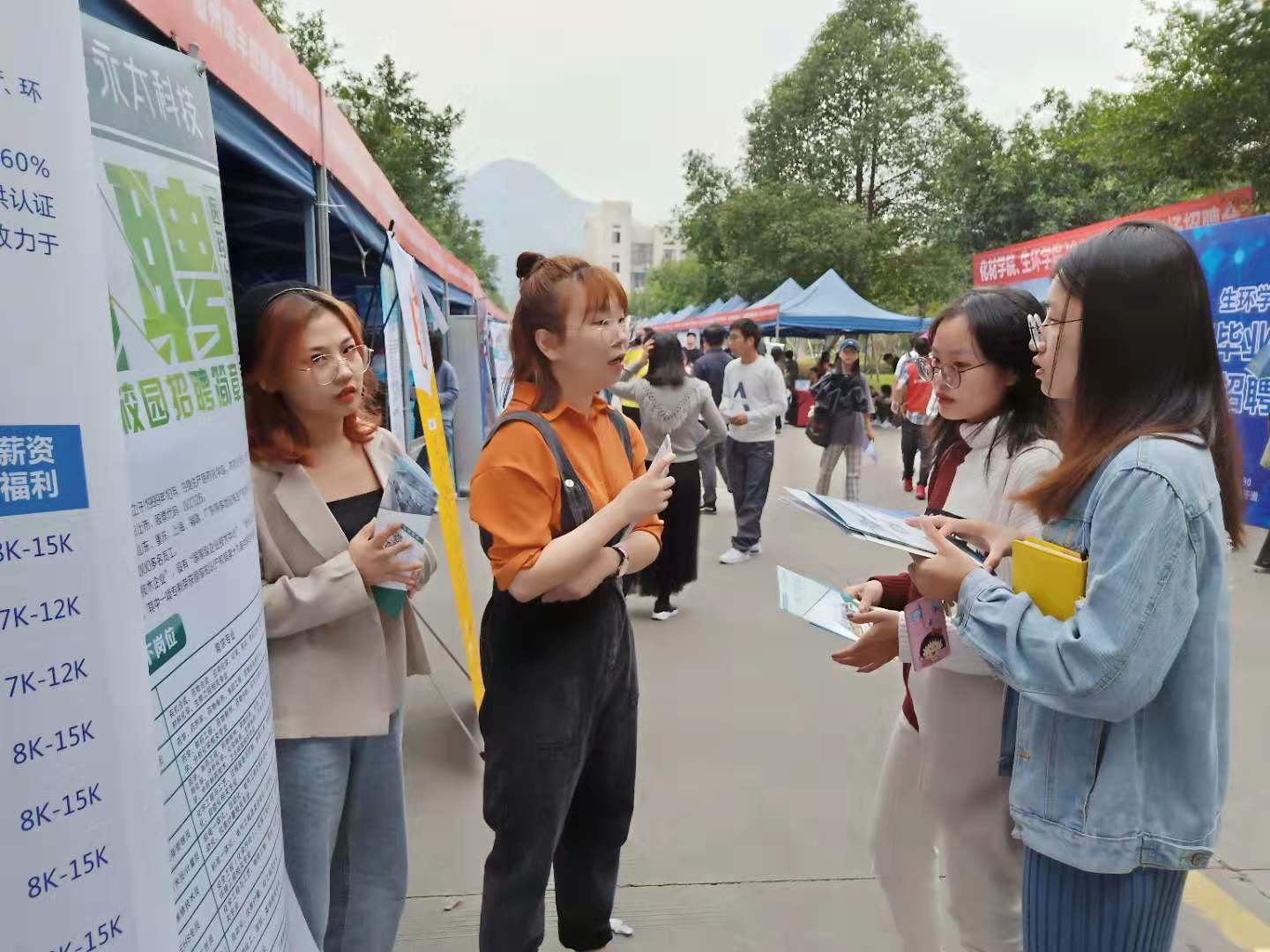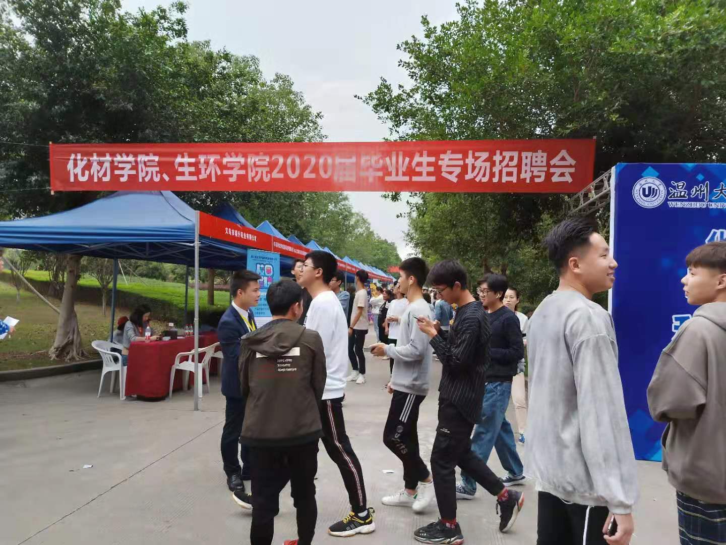 教学楼前及化材生环中间主干道举行。近100家用人单位和500余名我院学子以及其他学院闻讯而来的学生们参加了本次招聘会。