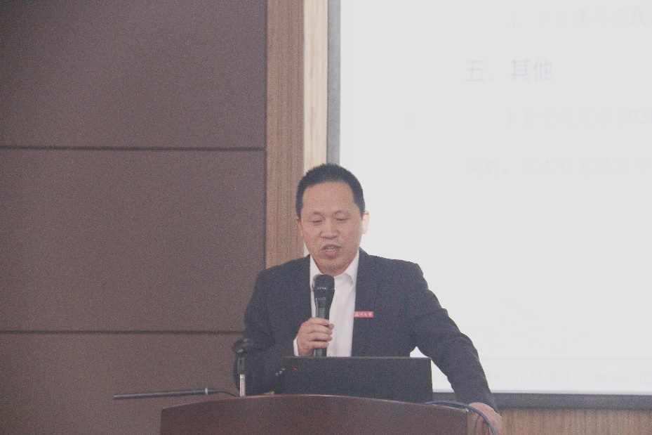 副书记周敬业就新学期学生工作进行了汇报,针对学生党建、学风建设、学生就业、学生安全工作这四个方面展开详尽的说明。