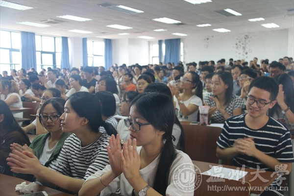 表示热烈欢迎,鼓励新同学今后多与老师交流。王舜院长着重介绍了学院的历史前沿、硬件设施、师资力量、人才培养、学科科研、学术交流、学生工作及学生发展状况等情况,并就如何认识“化学”给在场的同学们做了精彩的阐述,他引用诺贝尔化学奖得主莱恩的话,指出一个没有化学的世界奖没有合成材料。这将意味着没有手机、没有纸张等等,我们将重新回到“钻木取火”的原始生活。最后,王舜院长号召大家抓住最美的青春时光,促成一生最华丽的飞跃!