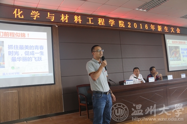 2016年迎新生大会在化材楼11C-401隆重举行。学院全体领导、各系(中心)、各科室负责人、辅导员、新生班班主任和291名新同学参加大会。会议由党总支书记方乐平主持。