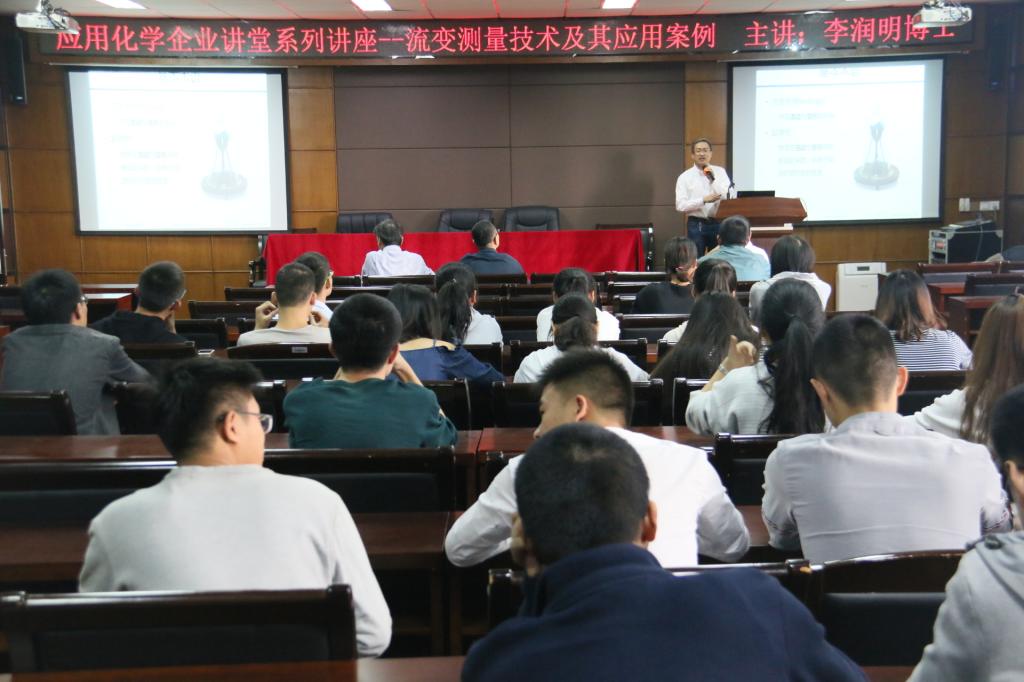 2017年10月25日下午14:00,河南大学副教授,美国TA仪器流变应用专家李润明博士受邀莅临我院,作了关于“流变测量技术及其在复杂流体中的应用案例”的学术报告,学院相关研究方向的师生听取了报告。