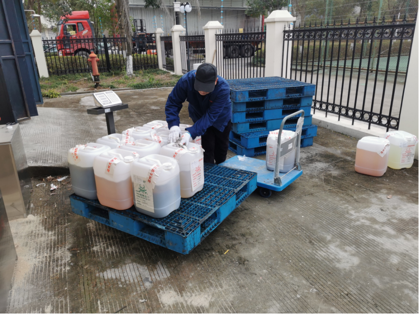 在国资与实验室管理处支持下,我院实验中心组织了寒假前实验室危险废弃物的清运工作。1月9日,我院实验中心特地组织了一次实验室危险废弃物的收集工作,以便使学院危险废弃物存量最小化。