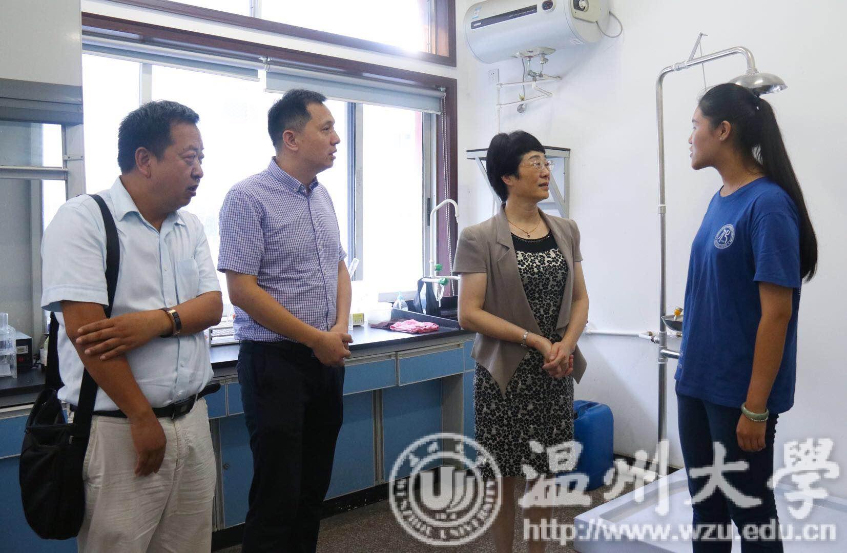 党委书记方乐平、党委副书记潘从义等一行人到温州市瓯海区环境监测站慰问我校绿向导暑期实践队队员。瓯海区环境监测站分析室主任王彬彬、监测站实验员等热情接待了我校慰问团一行人员。