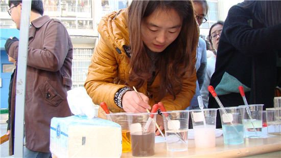 在A区主干道举行了主题为“EnjoyingChemistry化学游园会”的活动。此次活动面向温大全体学生,采用冲关领奖的方式进行。游园会的现场人气爆棚,热闹非凡!