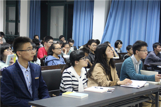 “喜怒哀乐就像三原色,会组合成千千万万种情绪,即复合情绪。”吕信恩老师首先以情绪作为开题,“情绪是把双刃剑,用好了能造福人类,用不好将害人害己。”对于情商,吕老师告诫在座团学干部要学会妥善管理自己的情绪。而对于智商,吕信恩老师讲到:“虽然人的智商可能是既定的,但是平常智商的人也可能在清华北大的校园里,也有可能站在美国最高领导人的位置上,所以接下来的人生道路上靠的不是非凡的智商,而是依靠自己不懈的努力和情商的培养。”那究竟怎样才能培养学生干部情商,更好地发挥他们的作用呢?吕老师用八个字来总结:化逆为顺,学有所为。