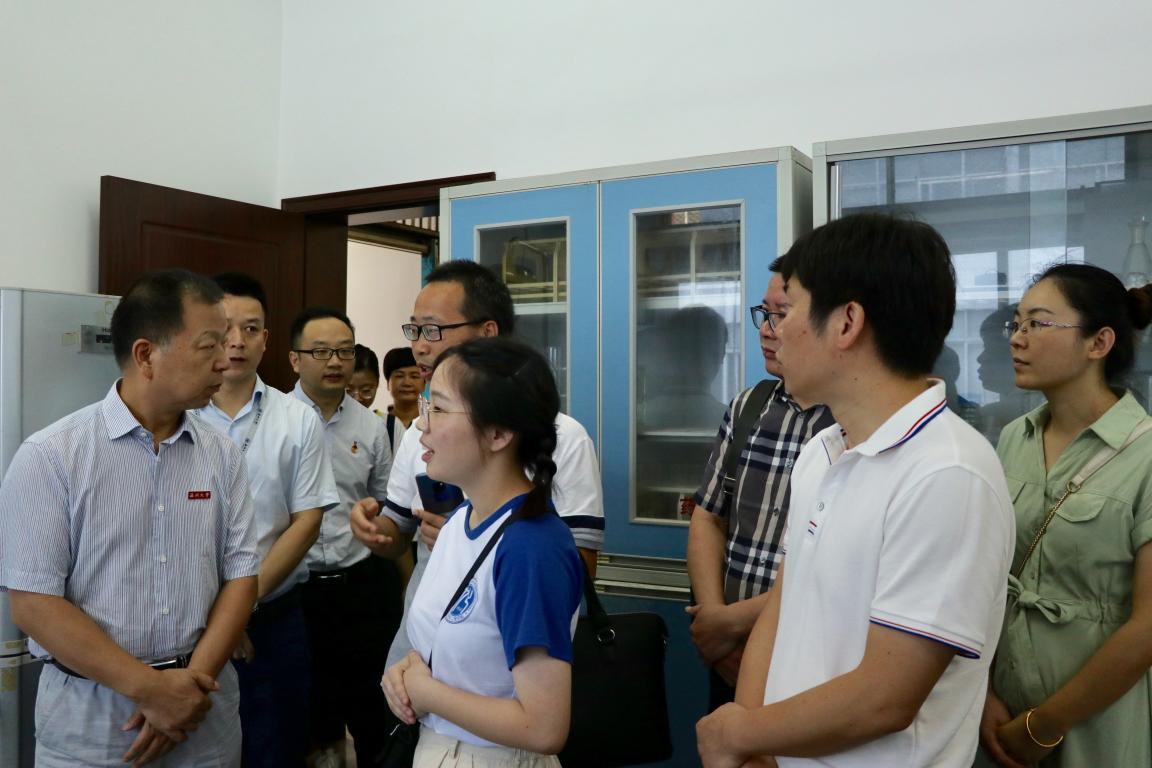 首先,吴金法书记一行人查看了队员们的实践环境、了解了实践队活动的开展情况、参观了实践基地。吴书记与绿向导实践队副队长陈欣娅进行了亲切的交谈,并参观了实验室。