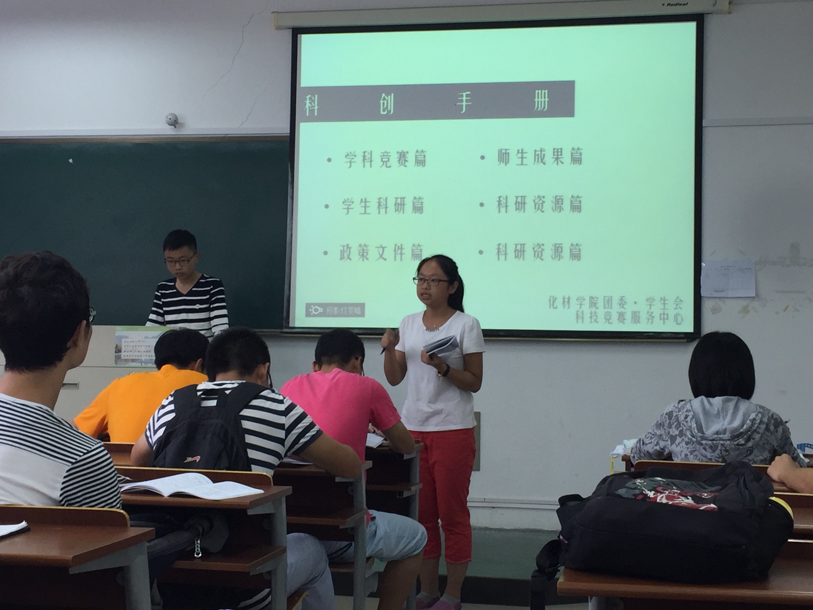 会议伊始,凌同学向各班科协委员介绍了科竞中心的作用以及何谓科协委员。在此之后详细讲解了学生科技创新指导手册的内容。其中侧重讲解了“挑战杯”等各类竞赛和学生科研活动。随后又介绍了女同av