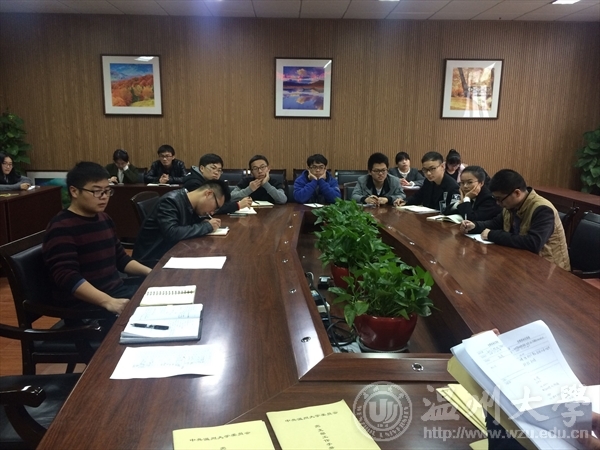2016-2017学年第一学期研究生党建工作会议在11B—204召开。学院党总支副书记潘从义、学生科辅导员蔡玲飞、各学生党支部书记及支部委员参加了会议。