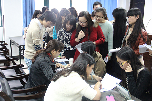 本次会诊以一对一形式进行,四位老师分排而坐,同学们一拥而上,可见大家对于简历修改建议的迫切需求。老师们手拿同学呈递上来的简历,仔细阅览详尽分析,给了每一个同学最可靠可行的修改意见,从整体排版到条目顺序,从科学规范用语到内容筛选,老师们都给于专业意见。在会诊过程中,林萍老师向其中一位同学说道:“求职意向是一份简历最重要的部分,必须放在看得最清楚的位置。”“工作经历的内容必须按照你选择的岗位进行筛选呈现,有一些你认为很了不起的经历,但是对于你所求的岗位毫无用处,就没有必要写出来。”该同学耳听心受,围观等待的同学也侧耳聆听,分外认真。