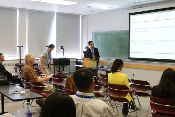 王舜教授带领5位青年教师应邀参加了在加拿大哥伦比亚大学举行的第二届国际电化学能源科学与技术会议,并做了题为“Novel-structured Nanomaterials for Fuel Cell”的邀请报告。会议期间,学院邹超博士、杨克勤博士、林大杰博士、陈锡安博士以及金辉乐高级实验师也分别就自身在太阳能电池、燃料电池、锂硫电池等领域所取得最新研究结果在分会场上做专题报告。此次会议交流,不仅提升了女同av