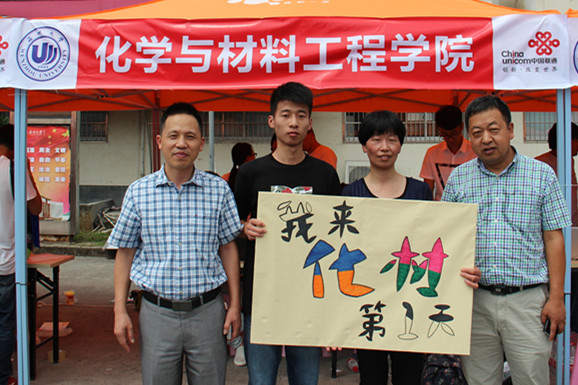 校长李校堃亲临新生接待现场并与新生及家长亲切交谈,院长王舜和党总支书记方乐平与学生家长合影留念。