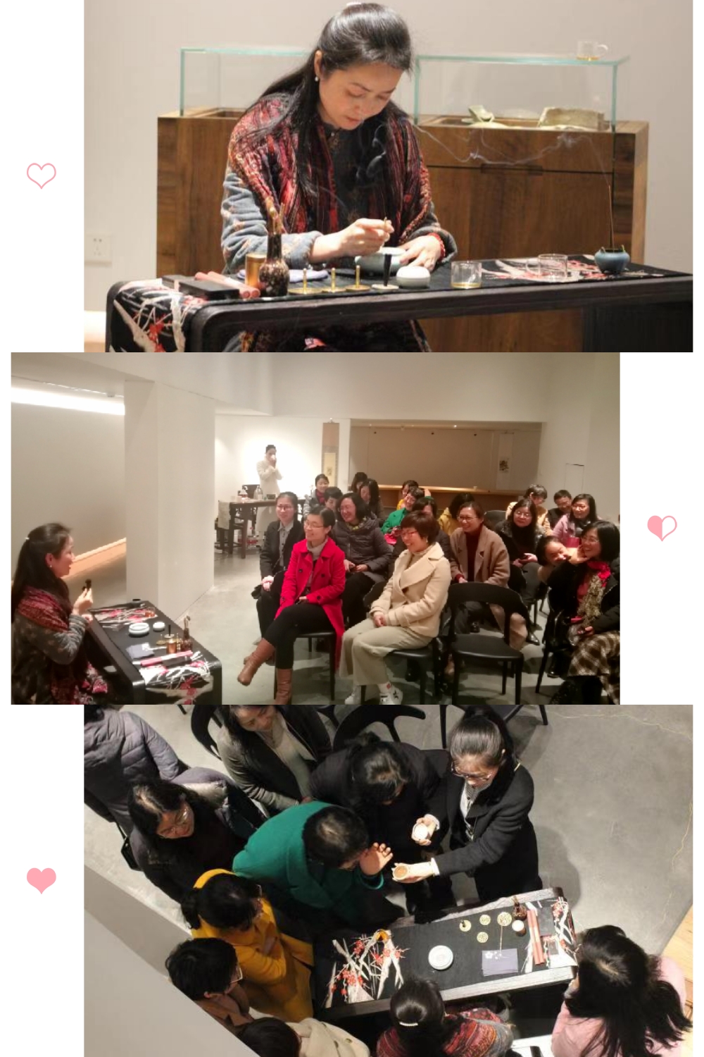 随后,制香师献上了优美的制香、闻香的表演,一个香炉,一堆香灰,一颗安定的心,一双灵巧的手,一缕细微的呼吸,一曲悠扬的古曲,是一场听觉和嗅觉的盛宴。在交流中,制香老师介绍了名贵香料的鉴赏与感悟,通过眼观、手触、鼻嗅等品香形式对名贵香料进行鉴赏和感悟,来到达颐养身心、净化心灵的目的,老师们亲手制香、礼香,怡然自得。