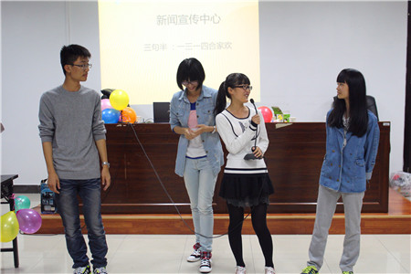 “喜庆锣鼓敲起来,我们四人走上台,上台说段三句半,一三一四合家欢......”此起彼伏的欢呼声从化材楼11B-208传出来,温暖了整个化材楼。2014年10月19日18:00,为了欢迎新成员的加入,进一步增进各种中心之间的感情,女同av