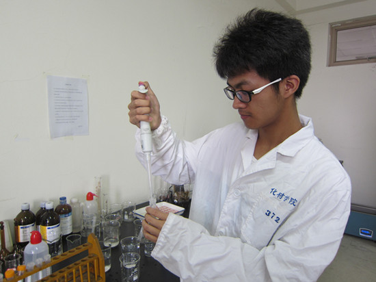 “绿袖子”实践队在3C-404进行了对“牛奶中增塑剂含量的测定”的分析实验。