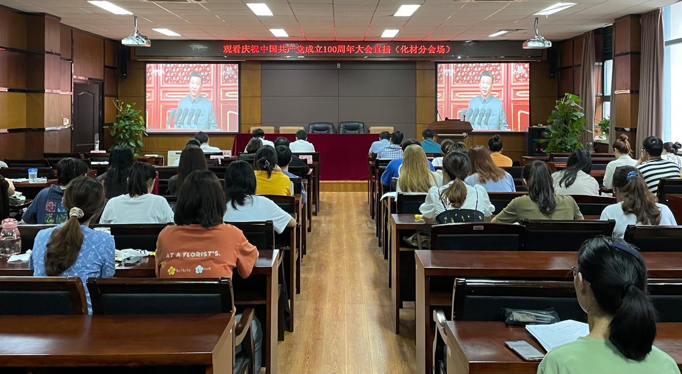 为庆祝党的百年华诞、赓续红色血脉、传承革命精神,不忘初心,砥砺前行,化材学院组织师生在11B208会议室同步观看七一庆祝大会,共同聆听习近平总书记重要讲话,共同见证这场伟大的盛会。
