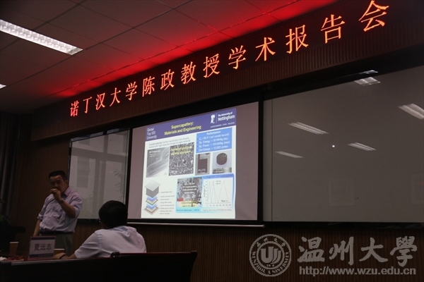 随后,陈政教授为女同av 师生作了题为“电化学储能创新”的学术报告。他首先简要介绍了自己的科研团队,并对团队在超级电容器(supercapacitor)和超级电容池(supercapattery)的基础和应用研究方面取得的国际领先创新成果及市场的前景作了详尽的阐述,为我院师生的科研发展提供了新的思路和高度。在交流互动环节,学院师生就本次报告的内容和感兴趣的问题与陈政教授进行积极的交流互动,收益良多。陈政教授的详细回答,赢得现场阵阵掌声。