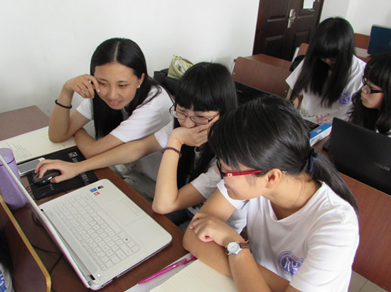“温心”暑期科普夏令营实践队全体成员在化材楼进行着紧张的教学前准备。