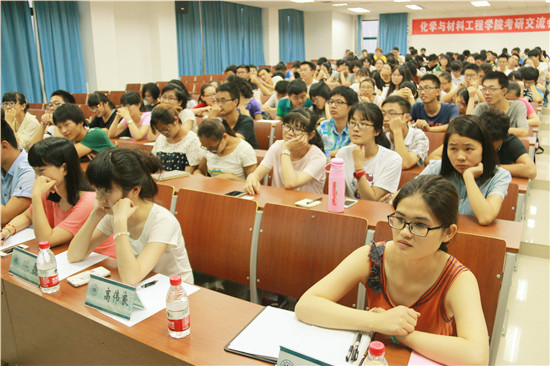交流会由李豪富同学主持,来自11材料班的胡建力和11化本班的司腾达两位同学在交流会上就考研经验做典型发言。胡建力认为,除了扎实准备专业课外,要注重数学、英语的复习,英语的口语能力锻炼不能放松,在复试阶段,要通过各种渠道了解招生信息,掌握复试技巧,争取得到各方面的支持。司腾达结合自己的经历,他认为备考需要三轮复习:第一轮复习“重点背单词,做英语真题”,第二轮复习“专攻不熟悉专业课知识点,同时坚持学习英语”;第三轮“总结复习,重点在政治复习”。互动交流中,同学们就考研准备过程中遇到的问题和疑惑进行了提问,9位考研成功的同学根据自身经历都给予耐心详细的解答。