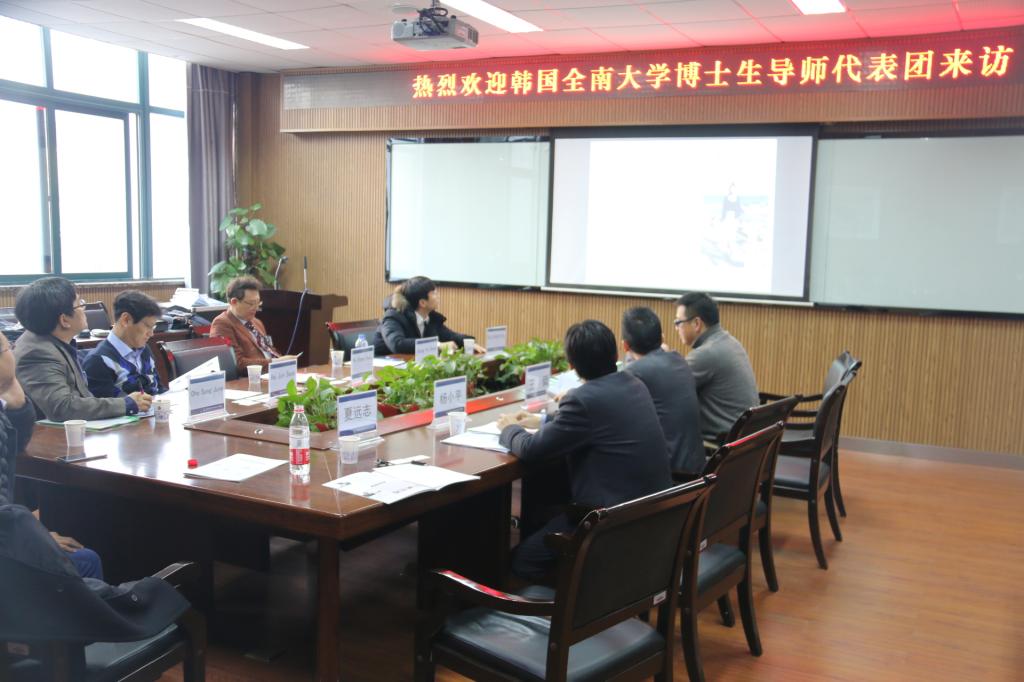 11B204会议室举行,会议由副院长杨小平主持。杨院长首先致欢迎辞,向韩国全南大学代表团一行表示热烈欢迎,并介绍我院的发展概况。他表示女同av