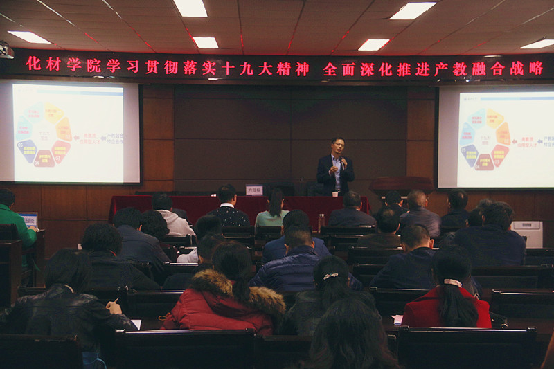 2017年12月6日下午1:30,我院邀校党委委员、副校长方益权在化材楼11B-208室作题为《学习贯彻十九大精神 全面深化推进产教融合战略》的专题报告,本次报告会由院长王舜主持,女同av