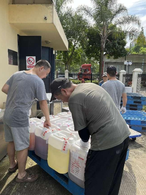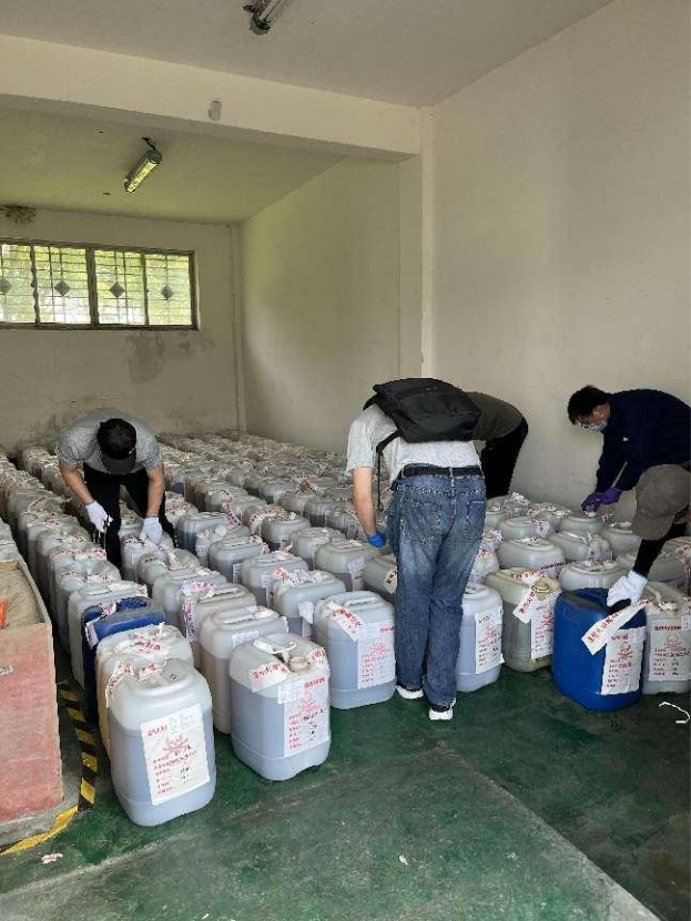 2022年6月24日早上8:00,处置公司人员进行废液测试,以有效保障废液转运过程的安全。经过磅、装运、交付危废转运联单后,于中午10:30顺利离校。此次实验室废弃物共转移处置有机废液、无机废液等共计7.861吨,其中女同av