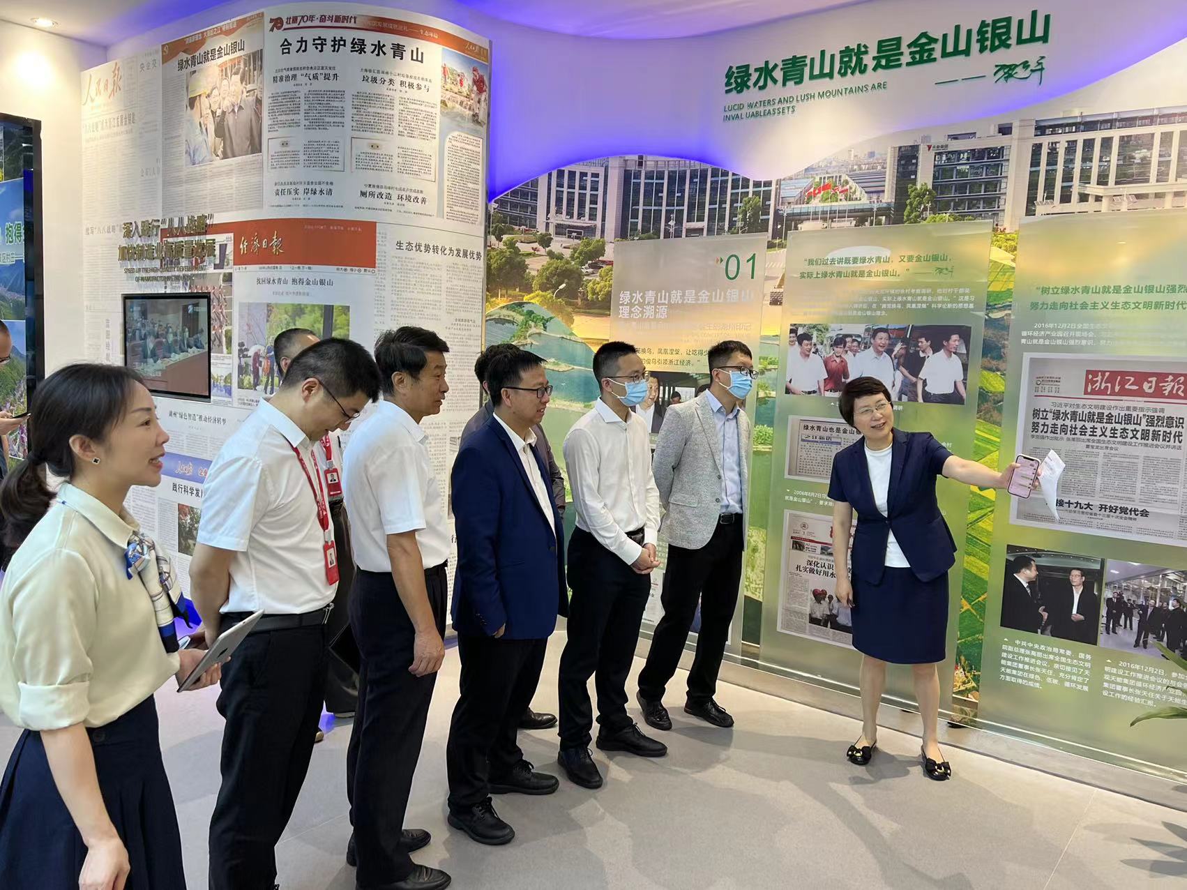天能集团相关负责人带领杨植院长一行参观了集团展厅,介绍了天能集团的发展历史,企业理念、企业使命、党建特色等内容,整个展厅充分展示了天能强大的企业实力。