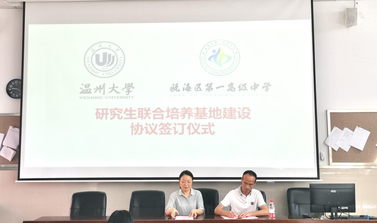 与温州市瓯海区第一高级中学共建学科教学(化学)教育硕士专业学位研究生联合培养基地的签约仪式在瓯海一高活动室举行。女同av