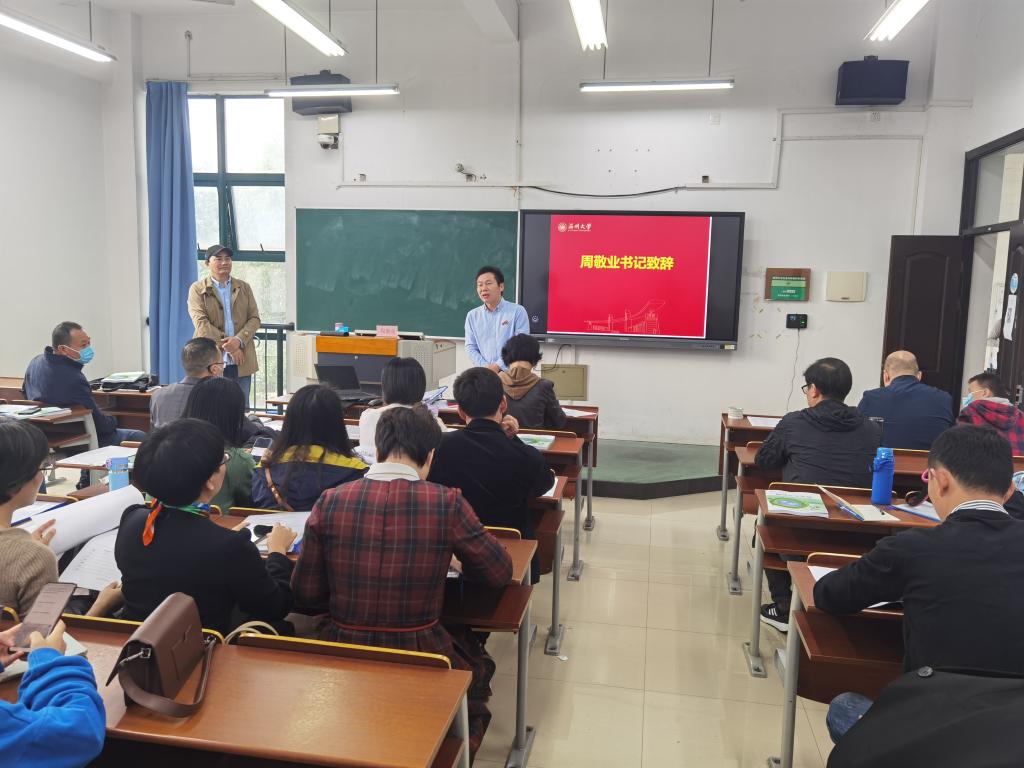 11A203教室顺利开班,来自全市各中小学近40名老师参加了此次学习与研讨。本次项目培训由我院张卫兵老师负责主持。学院党委副书记周敬业出席会议并致辞。