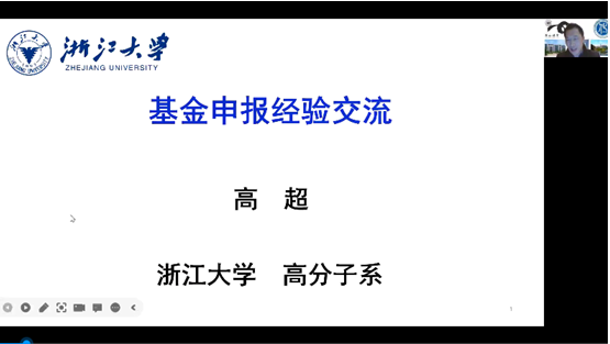 11B-208会议室线下参加,线上于腾讯会议同步展开,我校以及其他高校100多位同仁在线参加。杨植院长首先对高超教授的到来表示热烈欢迎,并向老师们介绍了高超教授的基本情况。高超系浙江大学求是特聘教授、博导,国家杰出青年基金获得者、浙江大学高分子科学研究所所长。长期从事石墨烯化学与组装材料等方面的研究。在Science, Sci. Adv., Nat. Commun., Adv. Mater.等期刊发表SCI收录文章240余篇。承研基金委重大、重点、杰青、面上,国家重点研发计划课题,军科委基础加强等项目十余项。相应成果打通了氧化石墨烯“料-材-器-用”全链条发展通路,完成了78项氧化石墨烯及其宏观组装成果相关专利权的转让,转让金额超2000万元,建成了全球首条获得国际石墨烯产品认证中心(IGCC)认证的单层氧化石墨烯生产线。曾获首2021年度浙江省自然科学奖一等奖、届钱宝钧纤维材料青年学者奖、全国发明展览会“发明创业奖项目奖”金奖等荣誉。