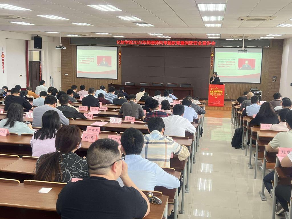 在11C401会议室召开师德师风整治动员大会暨保密安全宣讲会,会议由党委书记刘吟主持,全体教师参加会议。