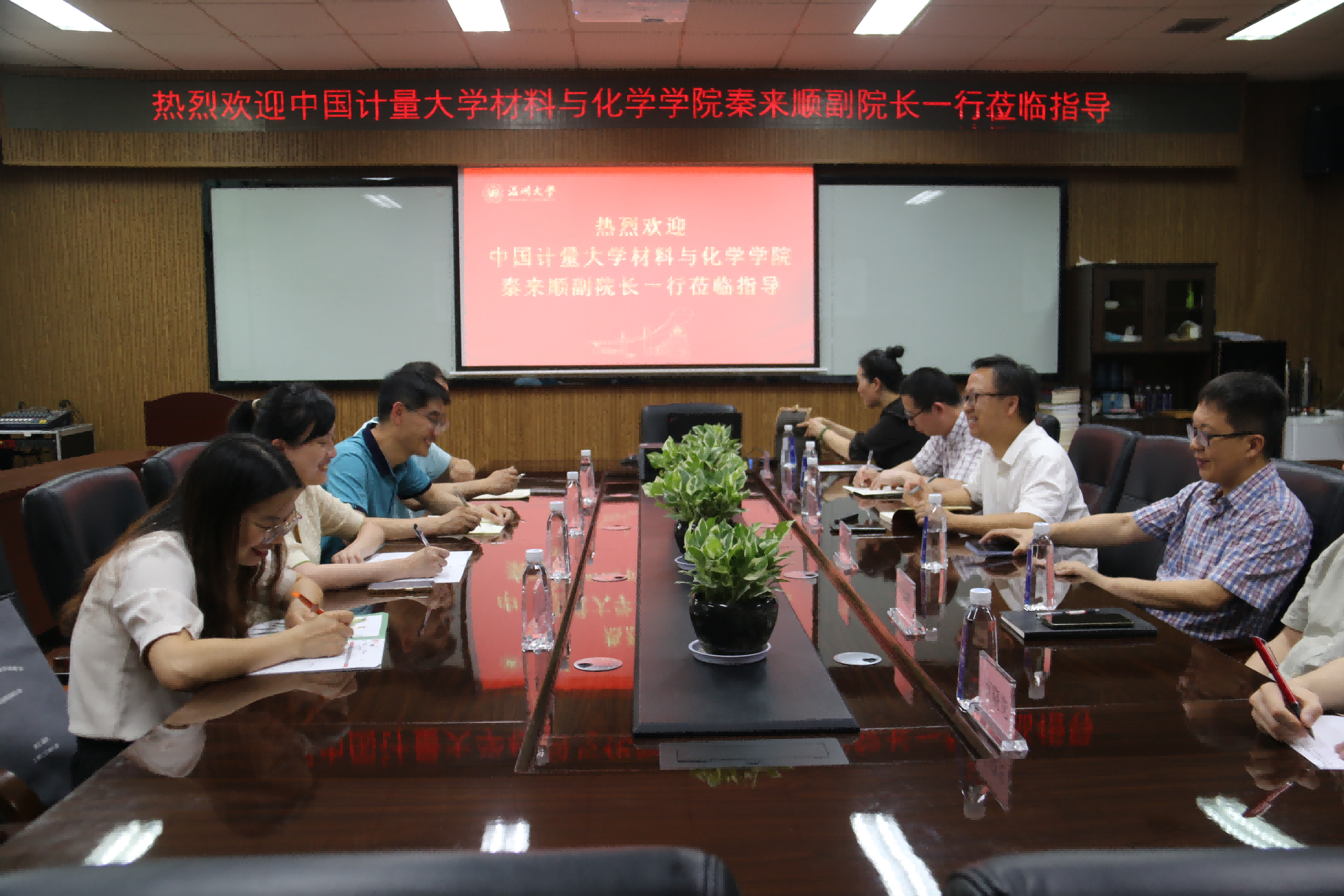 6月11日下午,中国计量大学材化学院副院长秦来顺、实验室管理主任徐扬、材料科学与工程专业负责人唐高、应用化学专业负责人郑小美等一行四人到访我院开展调研。学院院长杨植、材料系主任杨昕宇、化学系主任方国勇、应化系主任王兆伦、实验中心副主任陈素琴参加会议。