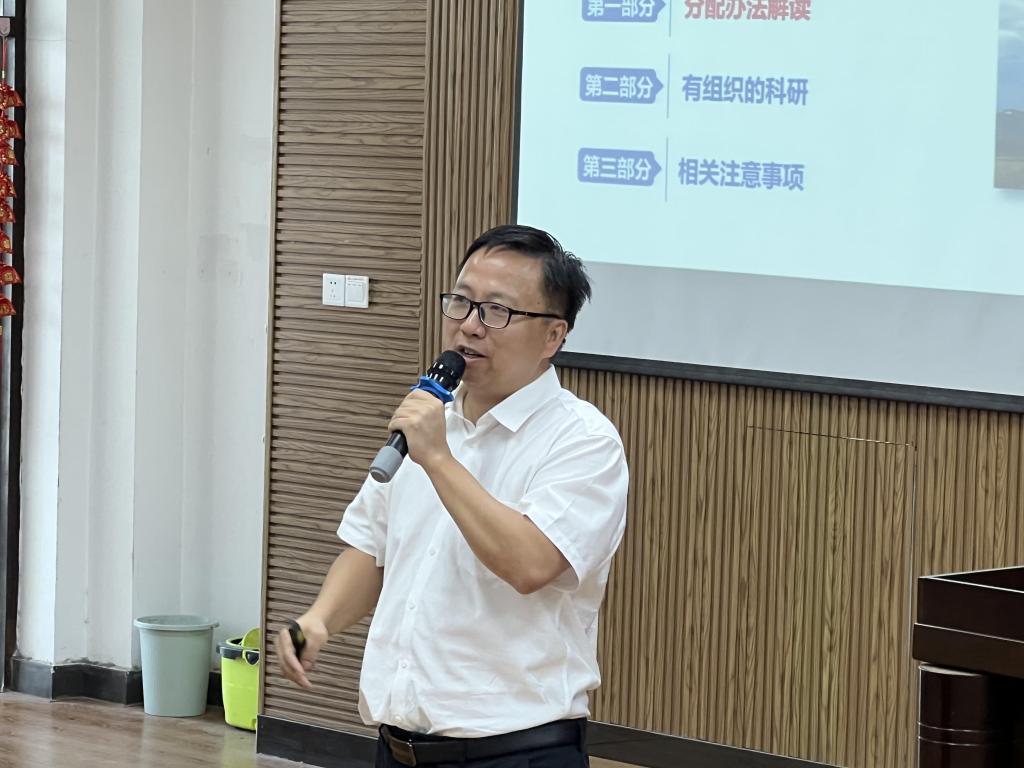 学院院长杨植作上半年度学院工作报告,并专题对学院科研业绩分配办法进行深入解读。他表示,科研业绩分配办法不仅涉及到全体教师的切身利益,更是关系到学院、学科的长远发展,老师们一定要明确相关要求,提早筹划,作有组织科研。