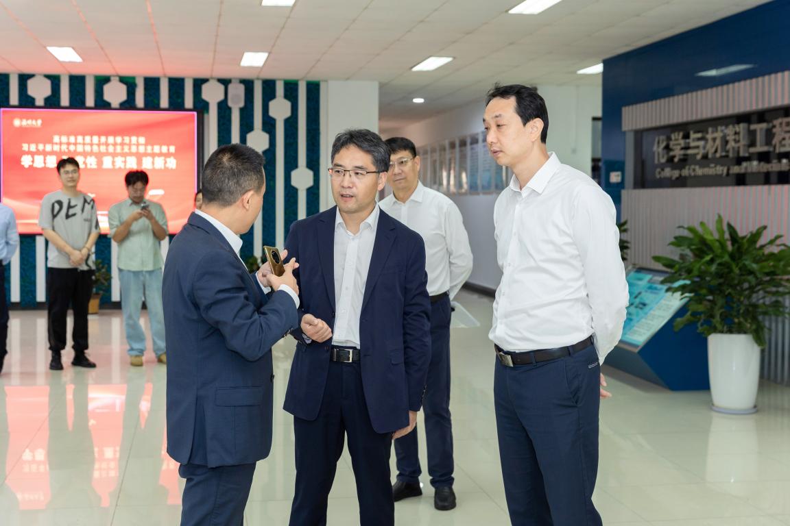 陈峰一行认真听取了学院在学科建设、师资队伍建设、人才培养、科学研究、服务地方等方面的情况。并先后参观了学院院史展示厅、样板党支部、扶摇书舍,深入了解女同av 的历史与现况。