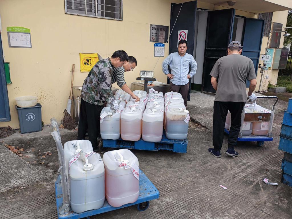2023年10月13日早上8:00,处置公司人员进行废液测试,以有效保障废液转运过程的安全。经过磅、装运、交付危废转运联单后,于中午10:20顺利离校。此次实验室废弃物共转移处置有机废液、无机废液等共计7.72吨,其中女同av