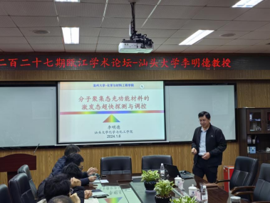 李明德教授是汕头大学理学院化学系的资深教授,他在超快激光光谱和光功能材料激发态探测与调控领域拥有广泛的研究经验和卓越的学术造诣。本次报告中,江教授重点分享了他在该领域的最新研究成果和进展。