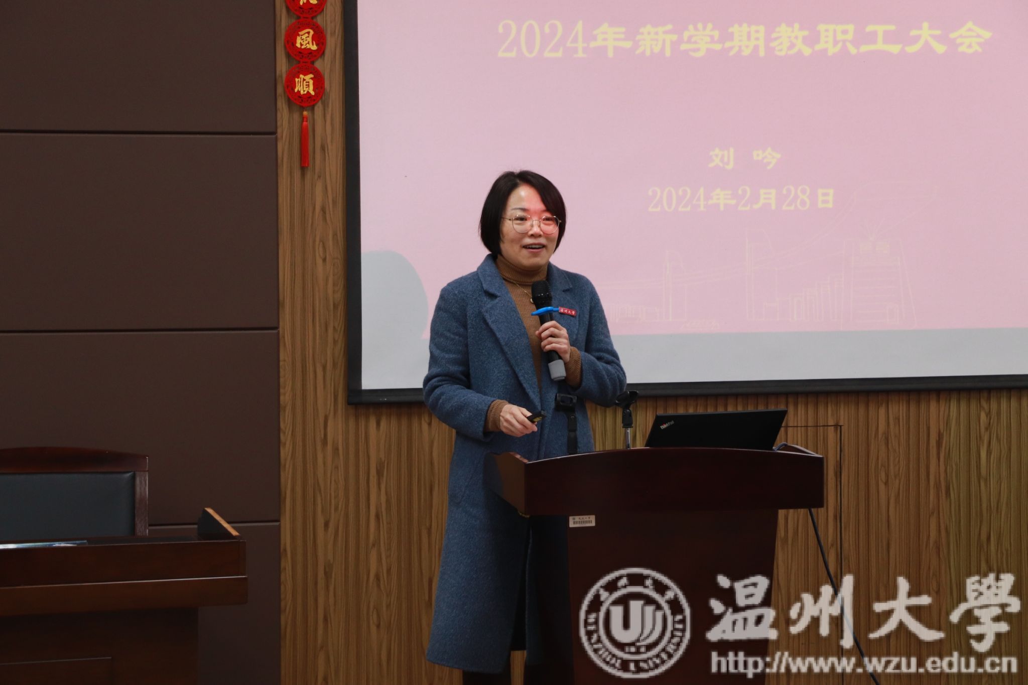 在11C401会议室举行2024年新学期教职工大会,全体教职工出席,会议由党委副书记周敬业主持。