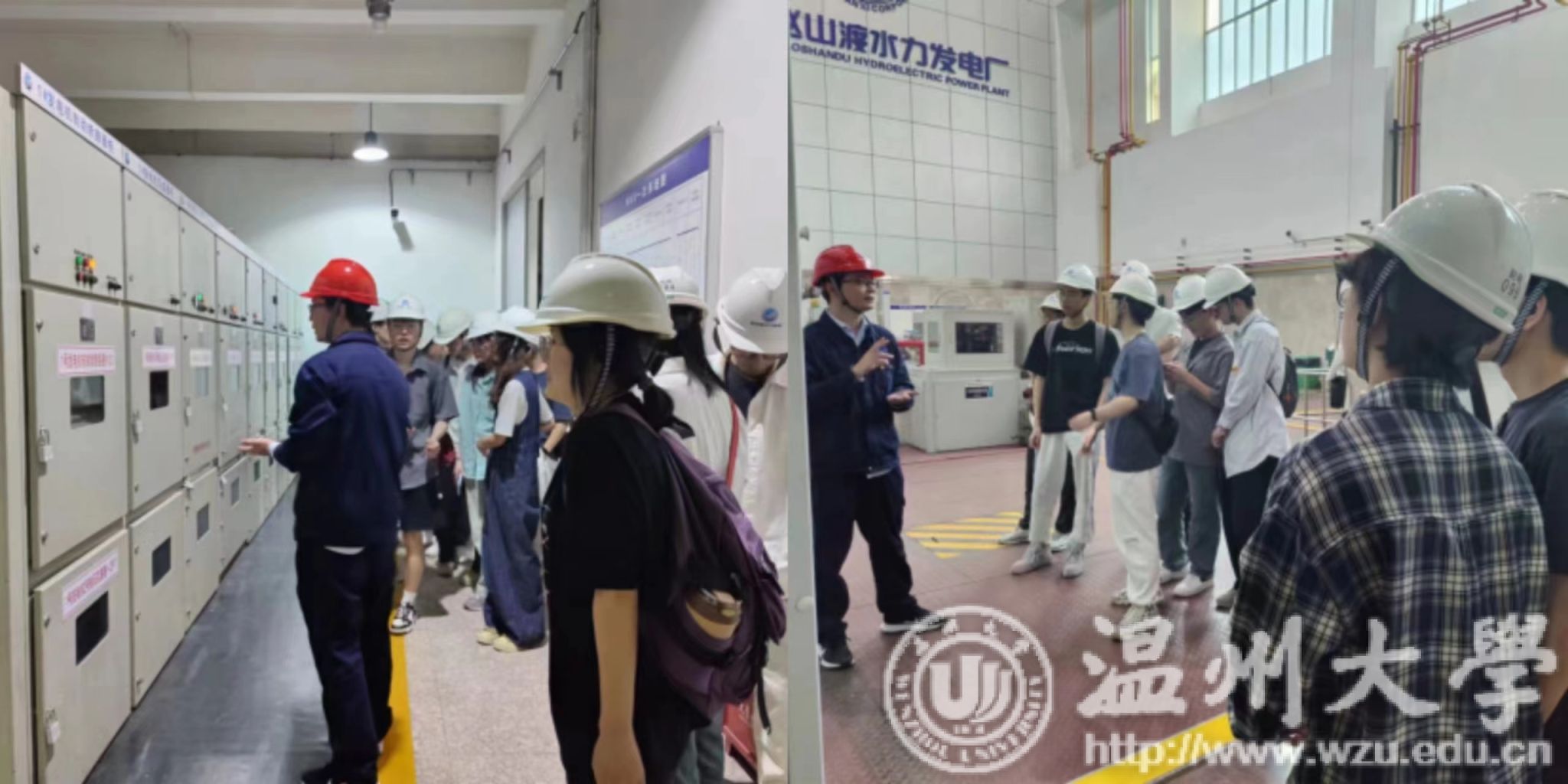 赵山渡水力发电厂负责人对同学们表示了热烈欢迎,并介绍了赵山渡水力发电厂的基本情况。赵山渡引水枢纽工程是飞云江干流中游河段上控制水利工程,是珊溪水利枢纽工程的重要组成部分,是以供水灌溉为主结合发电、防洪综合利用的大型水利工程,如今发电厂配备的两组完整机组在当地发挥着蓄洪抗旱、调节水利的重要作用。企业负责人导师带领同学们参观了发电厂内的布局、发电机组以及自动控制装置等,并作大坝的泄洪装置、泄洪装置的防腐、维修等工作实践模块导学。结束前,企业导师为同学们导览飞云江的美景,深情讲述了飞云江的文化底蕴,为化材学子未来爱温留温就业发展注入文化情感。