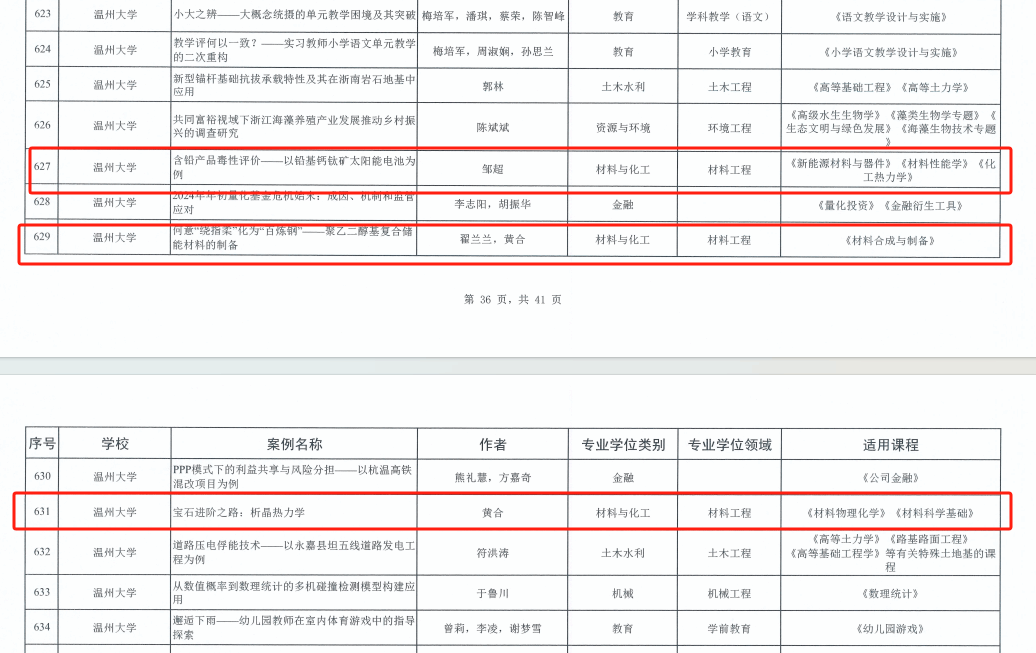 本次三项教学成果凝结了我院教师在材料与化工教学前沿领域的思考与探索。黄合老师聚焦热力学,巧用启发教学的方式,同时融入课程思政的元素,带领学生以“析晶热力学”探索“宝石进阶之路”;邹超老师重点关注生态环境议题,大力推广《含铅产品毒性评价—以铅基钙钛矿太阳能电池为例》教学,倡导广大学生以专业实践保护生态。“何意‘绕指柔’化为‘百炼钢’”,翟兰兰与黄合老师循循善诱,发动学生自主思考,探索聚乙二醇基复合储能材料的制备问题。