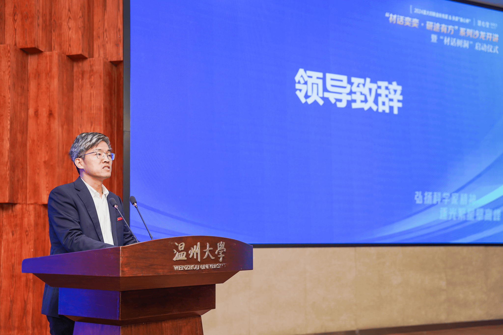 党委书记邹超致辞。邹书记首先向出席活动的领导与师生表达了诚挚欢迎与感谢,并鼓励研究生们尝试探索攀登高峰,在自我突破、触摸前沿的过程中,重塑自我、实现蝶变。邹书记给现场研究生分享了三点心得:一是科研是一场人生逆旅,科学研究没有捷径可言,希望同学们勇于面对失败和积极尝试;二是优质的导学关系是一场双向奔赴,同学们要去洞察学会如何和导师的积极导学互动,聚焦学习生活成长丰盈的双目标,以开放的心态,虚心求教、双向奔赴;三是协同育人是一场幸福之旅,学院将全方位纳入共济资源,多方协同身心研成长需求,通过“材话树洞”,共创三全育人、协同育人研学家园,共建幸福学院。
