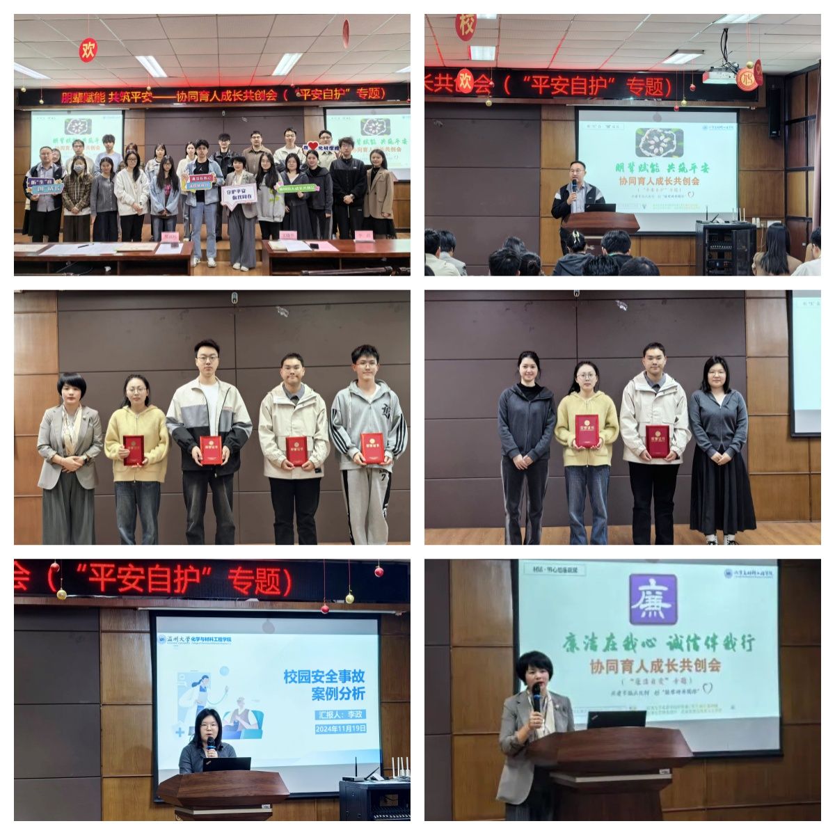 “筑安践廉”系列专题协同育人共创会在化材楼11B208会议室举行。学院党委副书记王晓华、学工办辅导员、本研安全委员及心理委员与会。会议由学工办主任邹涌彬主持。
