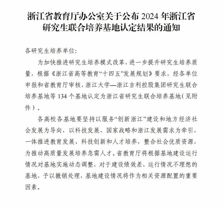 近日,浙江省教育厅发布《关于公布2024年浙江省研究生联合培养基地认定结果的通知》的名单,女同av