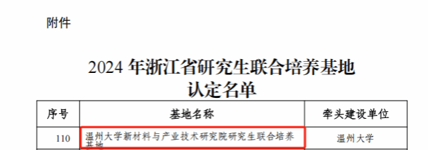 新材料与产业技术研究院研究生联合培养基地成功认定为省级研究生联合培养基地。这一认定标志着我院在新材料、新能源领域硕士研究生联合培养、导学模式创新方面迈出了重要一步,彰显了学院在产教融合、协同创新方面的显著成效。