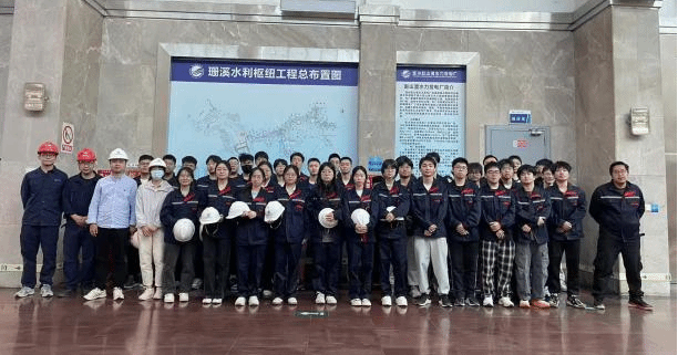 同学们在肖遥和许杰老师的带领下,前往赵山渡水力发电厂实习。赵山渡水力发电厂负责人热情接待了到访师生,并详细介绍了电厂概况。作为飞云江干流中游的关键水利枢纽,赵山渡工程不仅是珊溪水利枢纽的重要组成,更是一座集供水灌溉、发电、防洪等功能于一体的大型综合水利设施。目前电厂配备的两套发电机组在区域水资源调控、防洪抗旱等方面发挥着不可替代的作用。在企业导师的带领下,同学们实地参观了电厂的整体布局、发电机组和自动化控制系统,重点学习了水坝泄洪装置的工作原理及其防腐维护等实践知识。活动尾声,导师还带领大家欣赏了园区的秀丽风光,通过讲述流域的人文历史,激发了化材学子对温州这片热土的深厚情感,为未来留温发展埋下了文化的种子。