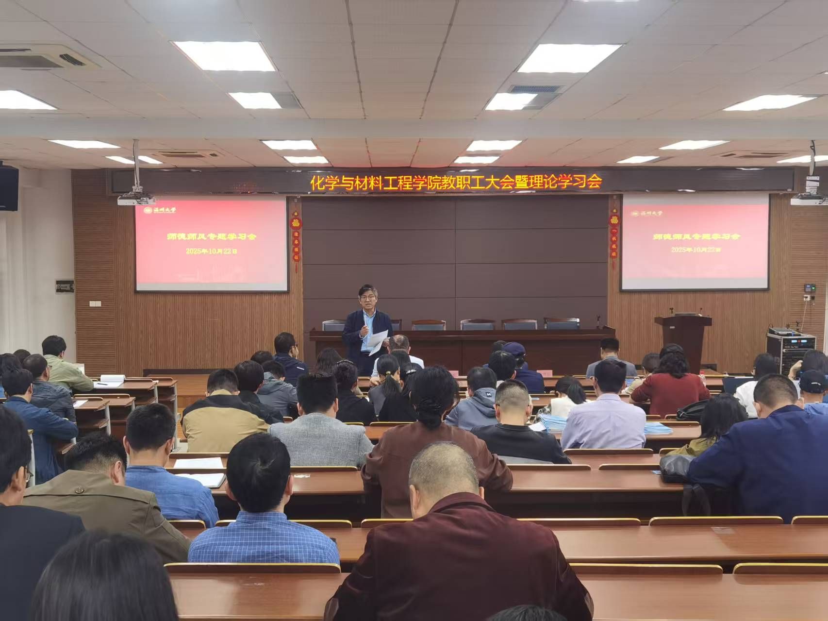 邹超书记主持开展了教职工理论学习暨师德师风专题教育。他领学了《中共浙江省委浙江省人民政府关于全面深化新时代教师队伍建设改革的实施意见(节选)》以及习近平总书记在浙江工作期间关于意识形态工作的重要论述及实践探索。他强调,全体教师要坚守教育初心,牢记为党育人、为国育才使命,树立正确的意识形态和宗教观,真正把立德树人根本任务落实到教育教学全过程,以高尚师德和扎实学识培育时代新人,营造风清气正、积极向上的育人环境。